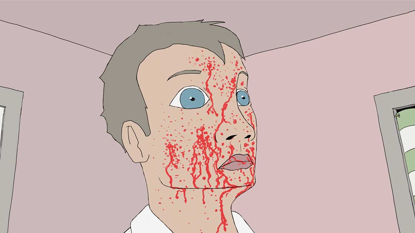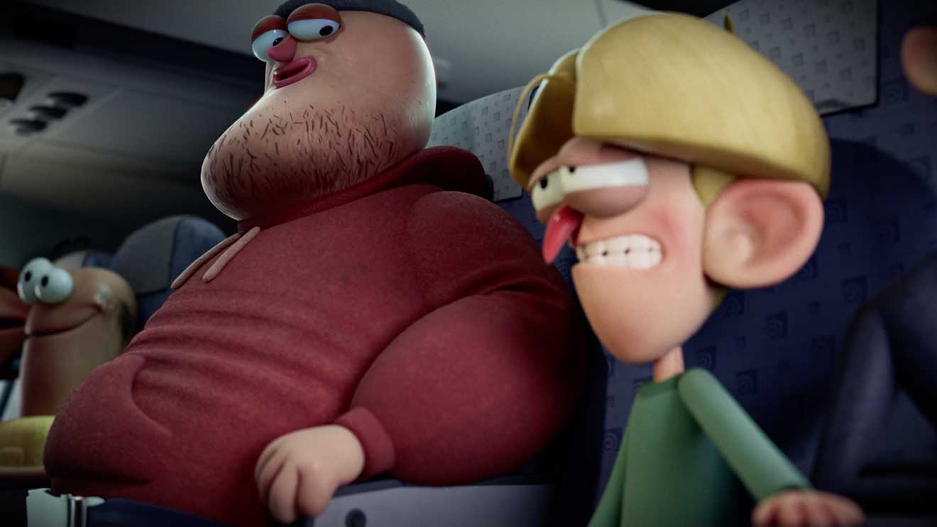 Turbulence is a stylized, chaotic animated short—like a fever dream of fluid simulations, caricatured humans, and airborne mayhem.